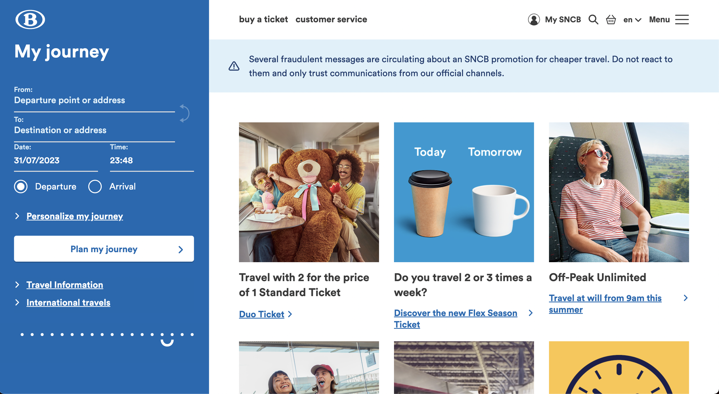 We integrated and expanded upon their new brand, and we paid particular attention to the research and UX phases of the project, as Belgian Rail offers over a 100 different types of discounts to their customers.